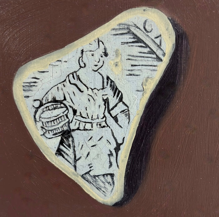 A highly detailed, exact copy of my original oil painting of an ornate fragment of sea-pottery.